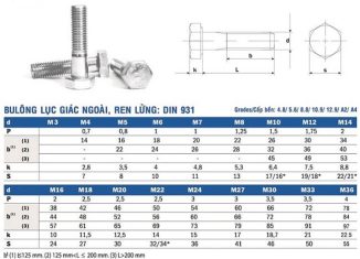 Bảng Tra Kích Thước Bu Lông Tiêu Chuẩn Mới Nhất Hiện Nay